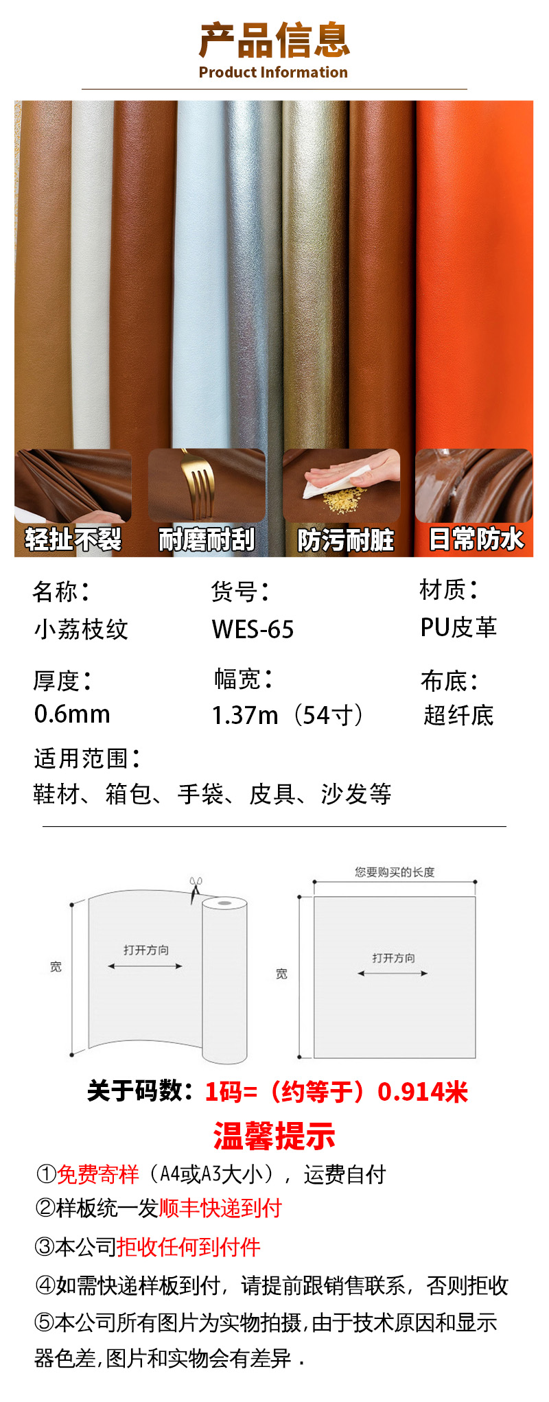 0.6mm超纤小荔枝纹PU皮革