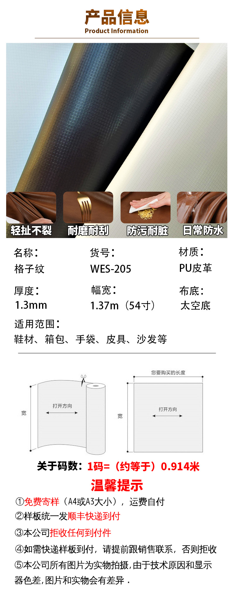 1.3mm太空格子纹PU皮革