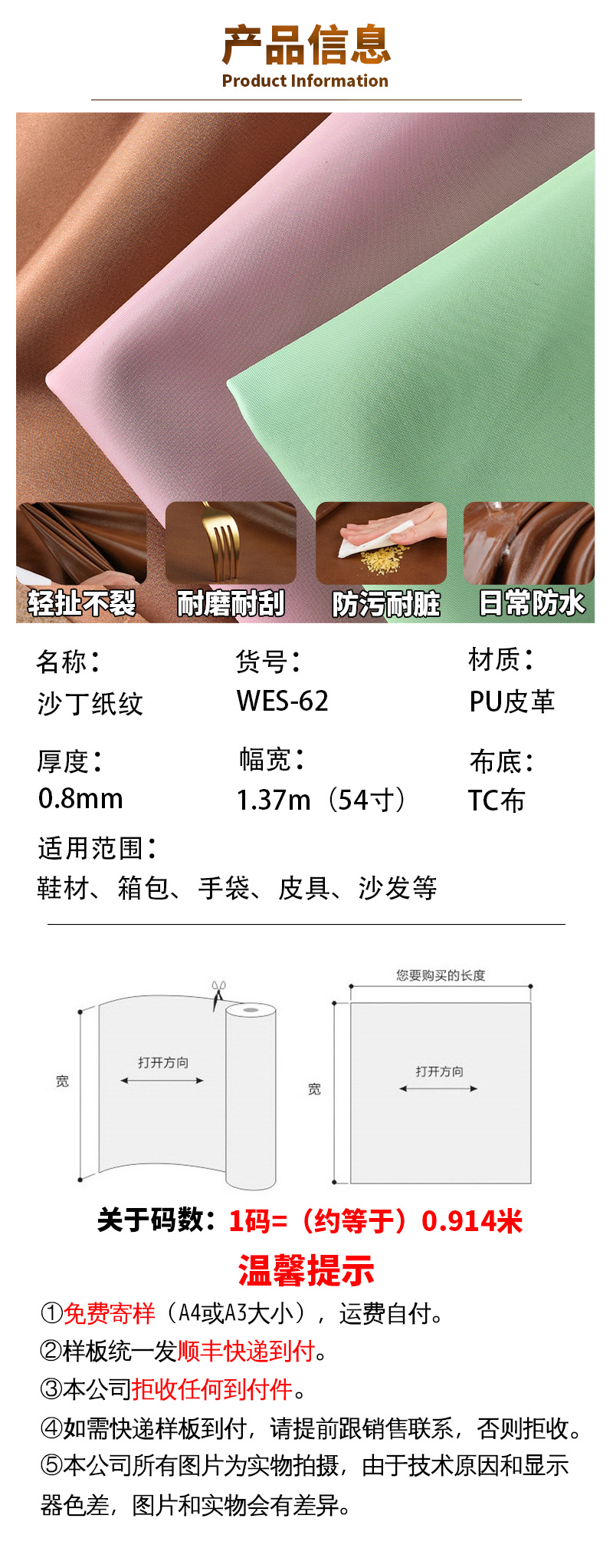 0.8mmTC底沙丁纸纹PU皮革